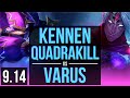 KENNEN vs VARUS (MID) Quadrakill, KDA 18/1/5, Legendary
