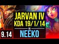 JARVAN IV vs NEEKO (TOP) KDA 19/1/14, Quadrakill, 4 early solo kills