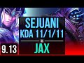 SEJUANI vs RENEKTON (TOP) KDA 9/0/11, 2 early solo kills, Legendary