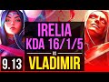 IRELIA vs VLADIMIR (TOP) KDA 16/1/5, 2 early solo kills, Legendary