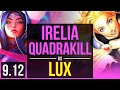 IRELIA vs LUX (MID) Quadrakill, KDA 15/1/5, 67% winrate, Legendary