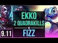 EKKO vs FIZZ (MID) 2 Quadrakills, 600+ games, KDA 20/2/2, Legendary