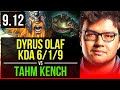 Dyrus OLAF vs TAHM KENCH (TOP) KDA 6/1/9, Dominating