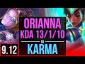 ORIANNA vs KARMA (TOP) KDA 13/1/10, 2 early solo kills, Legendary