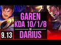 GAREN vs DARIUS (TOP) KDA 10/1/8, Dominating