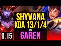 SHYVANA vs GAREN (TOP) KDA 13/1/4, 1.2M mastery points, 1400+ games