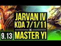 JARVAN IV vs MASTER YI (JUNGLE) KDA 7/1/11, Godlike