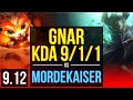 GNAR vs MORDEKAISER (TOP) 4 early solo kills, KDA 9/1/1, Legendary