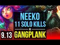 NEEKO vs GANGPLANK (TOP) 11 solo kills, 2 early solo kills, Legendary